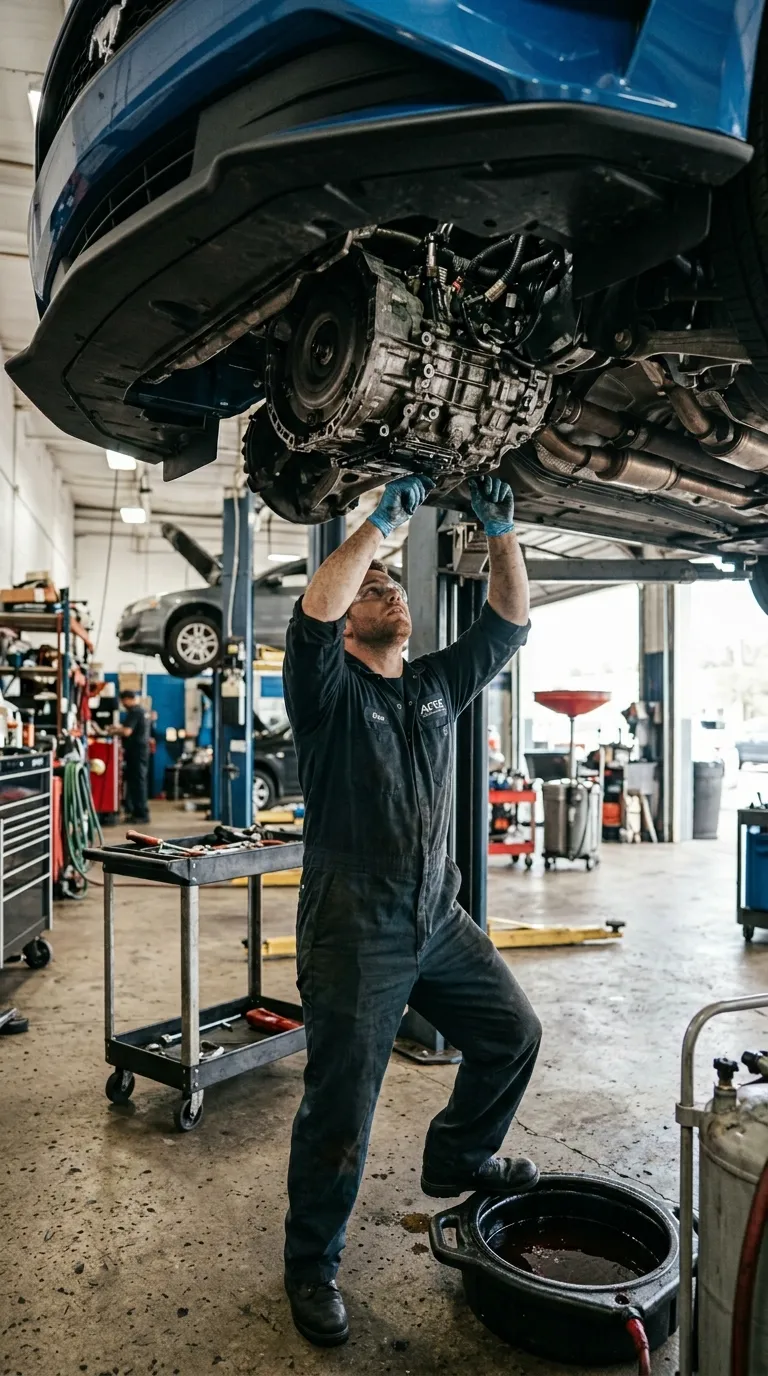 Signs include strange noises, rough shifting, decreased performance, warning lights, or fluid leaks. Early diagnosis prevents bigger problems.